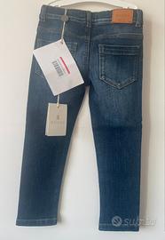 Pantalone Jeans bambina unisex Gucci in cotone elasticizzato vita regolabile logo tasche bottoni zip. Prodotto originale