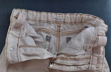Hanno l'elastico regolabile in vita, cinque tasche (tre davanti, di cui una piccolina, e due dietro) e si chiudono con zip e bottone.