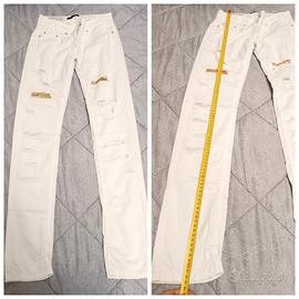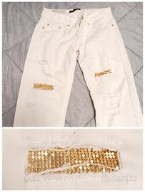 Pantaloni jeans bianchi con dettagli metallo colore oro.