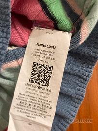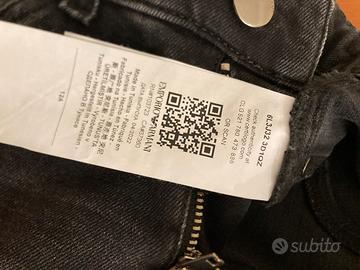 Emporio Armani. Jeans neri + maglia misto lana cashmere collo alto a righe misura 12 anni. Usati pochissimo.