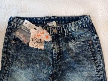 jeans ragazzina un po' elasticizzati (anche sul cinto). mai usati, nuovi con etichetta. due tasche davanti e due sul retro. morbidi