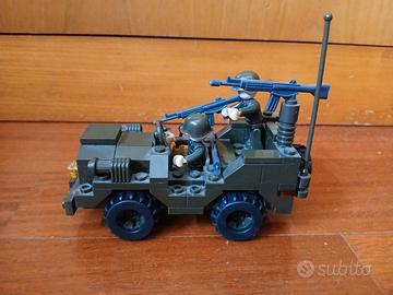 set militare in mattoncini composto da un carro armato una jeep e un carro lancia missili, sono presenti anche 7 personaggi militari dotati delle rispettive armi