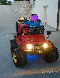 auto in buone condizioni,modificata per una durata del gioco Maggiore,con batteria auto, più una di scorta,per non fermarsi mai.impianto luci a led blu sul fondo,e fari davanti e sopra.dispongo di fari di ricambio,sopra e dietro,più interruttore acceleratore. la macchina va solo in avanti,per avere la retro,bisogna sostituire l'interruttore del cambio,che costa ,10€ in PEG Perego