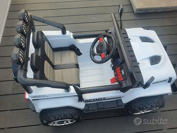 Vendesi jeep elettrica due posti per bambini mai usata, gomme perfette e completa di ogni accessorio compresi telecomando e musica.