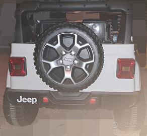 Macchina per bambini modello Jeep Rubicon con sportelli apribili e radiocomando per la guida a distanza del genitore.