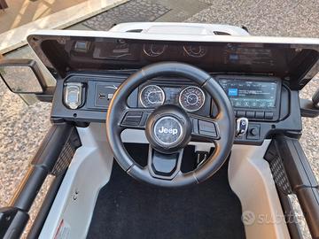 Licenza ufficiale Jeep Wrangler Rubicon: design realistico con loghi originali, porte apribili e finiture curate per un’esperienza di guida autentica e coinvolgente - Colore: bianco Massima sicurezza e comfort: 2 posti con sedili imbottiti in pelle, cinture di sicurezza, tappetino incluso e soft start per partenze progressive senza scossoni Controllo parentale intelligente: telecomando 2.4 GHz con selezione velocità, controllo direzione e freno di emergenza per la massima tranquillità dei genitori Prestazioni off-road reali: doppio motore 12V, batteria rinforzata 12V 7Ah, ruote in gomma EVA e ammortizzatori su 4 ruote per una guida stabile su diversi terreni Intrattenimento completo: luci LED anteriori e posteriori, fari LED sul rollbar, Bluetooth, MP3, USB, TF Card e melodie attivabili dal volante per un divertimento senza fine. Completa di tutto, batteria supplementare per ore di gioco.