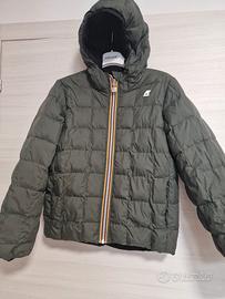 taglia 10 anni. Double face nero e verde militare. Usato con cura. nessun difetto. Segni di usura solo agli elastici che contornano i polsini più visibili nel lato verde. Larghezza spalle cm 37. Ascella-Ascella cm 50. Lunghezza cm 57