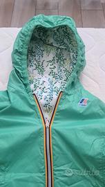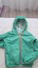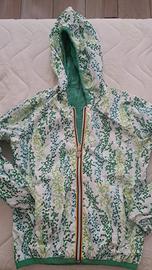 k-way da bambina/o di colore verde un lato e dell'altro con fiorellini, è reversibile; diventa marsupio Usato una sola volta!