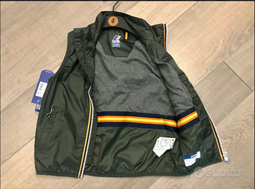 RICERCATO, SUPERGLAM e VERSATILE Gilet /smanicato imbottito cotone/jersey, adatto per le mezze stagioni, colore verde scuro militare/kaki con imbottitura in felpa di cotone grigio scuro. Articolo originale attuale collezione K-WAY BIMBO mod. VALEN NYLON JERSEY. Veste taglia 10anni. CONDIZIONI: NUOVO, CARTELLINATO da VAGLIARE quale IDEAREGALO. Prezzo RETAIL 130euro!