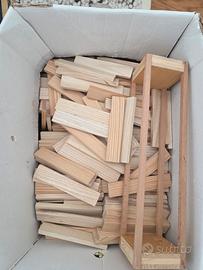 PEZZI TOTALI CA.600 DI CUI 400 FATTI A MANO DA UN FALEGNAME ARTIGIANO E 200 DELLA SUA SCATOLA ORIGINALE !!! Semplice e divertente, KAPLA®è un gioco di costruzioni basato su un modulo identico : la tavoletta in pino marittimo. È sufficiente posizionare le tavolette una sopra l'altra, senza nessun tipo di fissaggio, per creare, a propria scelta, una torre, una casa, un ponte o qualsiasi altro tipo di struttura o creatura straordinaria. Da soli o in compagnia, KAPLA®è adatto a tutti e regala allegri momenti di creatività!