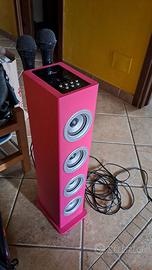Auna Karaboom - Karaoke, 4 Altoparlanti a Banda Larga, Bass Reflex, Bluetooth, 2 Microfoni Dinamici, Regolabile Separatamente, Porta USB, MP3, Rosa