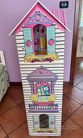 KidKraft Casa delle bambole in legno modello Annabelle completa di mobili e accessori originali come in foto. 3 livelli di gioco con ascensore e scale, adatta anche per Barbie e bambole da 30cm. Altezza 120 cm, larghezza 82 cm e profondità 40 cm. Piccoli segni di utilizzo ma perfettamente integra —> su un lato esterno ci sono degli adesivi, che volendo si possono ricoprire (v. foto). Utilizzata poco, viene venduta già montata, così com’è. Solo ritiro a Reggio Emilia (zona Gattaglio), a cura dell’acquirente. Non spedisco.