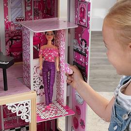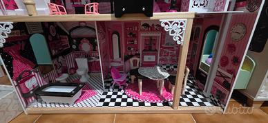 KidKraft Casa delle Bambole in Legno Amelia con Accessori e Mobili inclusi, Casa a 3 Livelli di Gioco con Ascensore per Bambole di 30 cm IN OMAGGIO 6 BARBIE (MANCANO VESTITI) E ALTRI ACCESSORI EXTRA CHE VEDI IN FOTO Pari al nuovo, utilizzata pochissime volte, Possibilità di spedizione o consegna a mano Viene Consegnata gia montata DIMENSIONI 82 X 122 X 41 Ore e ore di divertimento assicurato: questa elegante casa delle bambole in nero e rosa, con i suoi 3 piani, 4 stanze e balcone, rappresenta il sogno di ogni bambina; alto 120,9cm, il set da gioco è fabbricato con legno di alta qualità Personalizza la tua casa: lasciate che i bambini sviluppino la loro creatività con un set di 15 accessori per la casa, fornita di ascensore funzionante! i piccoli esploreranno le loro potenzialità creative giocando con bambole di 30 cm di altezza