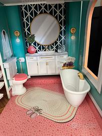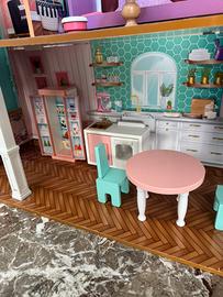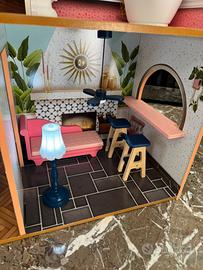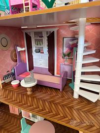KidKraft Casa delle Bambole in Legno con Accessori e Mobili inclusi, 4 Piani di Gioco con Gatto, Ascensore e Piscina, Giocattolo per Bambini 3+ Anni. Casetta per le bambole esotica e festiva: include colori accesi, tetto a cupola trasparente e un ascensore funzionante. Alcuni mobili si illuminano ed emettono suoni. Infinite ore di divertimento: questa casetta colorata è quello che i bambini desiderano; offre quattro piani, otto stanze e una terrazza sul tetto; è alta 123.5 cm ed è prodotta in legno di elevata qualità. Tenuta molto bene, in ottime condizioni, consegno a mano zona Roma.