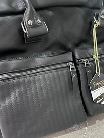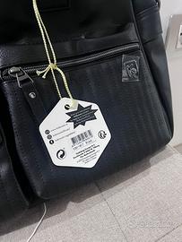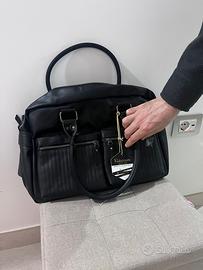È inoltre dotata di una tracolla regolabile e staccabile. Nella parte anteriore della borsa è presente un'ampia tasca per gli oggetti che si desidera avere rapidamente a portata di mano. Nell'ampio scomparto sono presenti diverse tasche con cinghie elastiche in cui è possibile inserire facilmente una tazza. Sul retro della borsa è presente un'ampia tasca per riporre ulteriori oggetti. LA BORSA NON INCLUDE UN MATERASSINO FASCIATOIO.