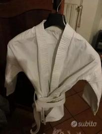 kimono karaté in buone condizioni per ragazzo/ ragazza ( unisex ) compreso di giacca bianca con cintura bianca , e pantalone bianco-.