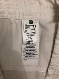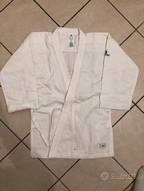 Kimono per Karate da bambino, perfetto per chi è alto 140 cm, complete di Cinture bianca, gialla, arancione, queste ultime due lunghe 220 cm, usato poco e ben tenuto. SENZA CINTURA