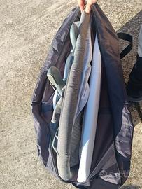Compresa sacca da viaggio con tracolla e cinghie per fissaggio al letto.