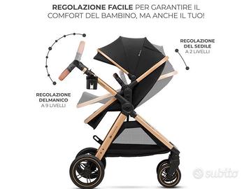 Kinderkraft ESME Trio passeggino neonati 3 in 1 fino 26 kg, con Ovetto I-SIZE 40-75 cm, Carrozzina reversibile fronte mamma e strada, Pieghevole, Nero