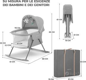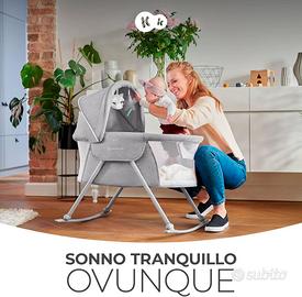 Kinderkraft LOVI Camping Cot Rocking Cradle Canopy Mattress Foldable for Babies 0-15 kg Grey