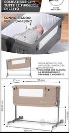 ✅MULTIFUNZIONI: lettino 3 in 1 per bambini dalla nascita fino a 85 cm di altezza o fino a quando il bambino non sarà in grado di alzarsi da solo (a seconda di cosa accade prima). Culla da affiancare al letto, lettino per neonati e lettino per bambini più grandi in uno ✅SICURO: il telaio è realizzato in acciaio solido e resistente. Dispone di gambe larghe che aumentano la stabilità della struttura. Il lato a scorrimento realizzato in tessuto di rete è ulteriormente protetto con un materiale morbido. ✅ADATTABILE: è dotato di un materassino estensibile e di altezza regolabile su 5 livelli diversi. Le gambe regolabili e le lunghe cinghie di fissaggio consentono di adattare perfettamente la culla al letto dei genitori. È possibile regolare l'inclinazione del materasso in 2 posizioni ✅PRATICO: il lato si abbassa in poche mosse, permette a NESTE GROW di trasformarsi da lettino in culla da affiancare al letto e facilita l’allattamento durante la notte. Il lettino può essere esteso senza problemi e le ruote ne semplificano lo spostamento da una stanza all'altra ✅ACCESSORI: materassino rigido incluso. I materassi rigidi sono consigliati dai fisioterapisti (per i neonati). Il materassino si adatta a tutti i lettini. Il kit include una borsa per il trasporto Colore Beige Marchio kk Kinderkraft Dimensioni del prodotto 100L x 57l x 69 Il preZzo in negozio è 140€ , io lo vendo a 90€ , il lettino è nuovo mai stato utilizzato . Per qualsisi info potete contattarmi, no perditempo