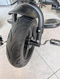 - la struttura modulare consente di adattare facilmente il triciclo all'età del bambino. La chiusura facile e senza l’uso di attrezzi ne agevola il trasporto. Il genitore regolerà l'altezza del maniglione alla sua statura (4 livelli diversi). E per i bambini più piccoli c’è il poggiapiedi pieghevole.