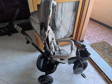 Triciclo 5 in 1 bambini dai 9 Mesi a 5 anni circa. con Maniglione, Cappottina impermeabile con filtro UPF50+, Pieghevole, Seduta girevole a 360 gradi, Grigio