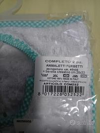 Kit asilo composto da 2 grembiuli 3/4 anni come nuovi, asciugamano e bavetta con elastico ricamabili ancora sigillati nella confezione originale, mai usati.