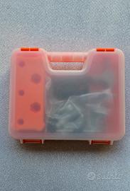 Vendo kit attrezzi da lavoro per bambini, usato ma in ottime condizioni, ancora nella scatola originale. Include martello, viti, bulloni e altri accessori in una pratica valigetta arancione. Ideale per giochi educativi e creativi.