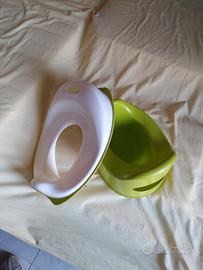 Kit bagno composto da vaschetta sagomata per neonati, sostegno per vasca da bagno con ventose, vasino e tavoletta adattatore per wc. 15 euro se comprati in blocco altrimenti 5 euro costo singolo della vaschetta 6€, sostegno con ventose 6€, adattatore wc e vasino 5 €. Disponibile anche in zona Settecamini Casal monastero.