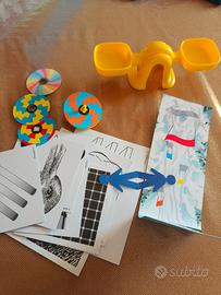 Perfetto per giovani scienziati curiosi dai 8 anni in su! Questo kit è un vero e proprio laboratorio domestico che permette di esplorare in modo pratico e sicuro tre discipline fondamentali: Chimica, Fisica e Ingegneria. È un ottimo modo per avvicinare i ragazzi al mondo STEM. Contenuto: 🧪 Kit di Chimica: Provette, porta provette, siringhe (strumenti di misurazione), spatoline, pipette e 3 tubetti di reagenti (polveri colorate, verificare scadenza e istruzioni prima dell'uso). ⚖️ Kit di Fisica/Ottica/Meccanica: Bilancia giocattolo per esperimenti con pesi. Dischi colorati per esperimenti ottici e la percezione del colore. Carte con illusioni ottiche (coniglio/anatra, strisce, ecc.). Elementi per esperimenti sulla densità/galleggiamento (oggetti vari, vasetto con manovella). ⚙️ Kit di Ingegneria/Modellismo: Componenti modulari bianchi, ingranaggi neri, perni e connettori colorati (arancioni/blu) per costruire modelli meccanici funzionanti (es. la gru raffigurata). ⚛️ Kit Molecolare: Atomini e legami colorati per costruire modelli 3D di molecole (es. acqua, glucosio, caffeina). 📖 Manuale di Istruzioni Originale (in italiano, "Manuale da leggere e conservare per future referenze"). Condizioni dell'Articolo: Usato ma in ottimo stato. La maggior parte degli accessori è intatta e ben conservata. I componenti chimici/reagenti sono inclusi (come da foto), ma si consiglia sempre la supervisione di un adulto e la verifica delle istruzioni di sicurezza.