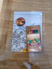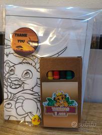kit colori gadget festa compleanno re leone composti da: - 6 colori a cera - foglio da colorare - etichette personalizzate € 1.60al pezzo spedizione rapida contattami x info possibilita di realizzare anche altri personaggi