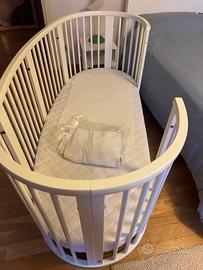 Culla Stokke Sleepi Mini in perfette condizioni dotata di materasso e kit per le successive estensioni V2 fino a 3 anni circa e V3 fino a 5/6 anni con relativi materassi. La culla e i lettini sono dotati anche di paracolpi imbottiti ed eventualmente lenzuola e coperte adatti a tutte e tre le misure. Spese di spedizione a carico del destinatario.