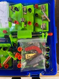 Questo kit educativo è progettato per esperimenti di elettricità e magnetismo, ideale per studenti e appassionati di fisica. Contiene strumenti di misura come voltmetro e amperometro, resistenze, interruttori, morsetti, magneti a ferro di cavallo e vari componenti per la realizzazione di circuiti elettrici. Permette di esplorare concetti fondamentali come il funzionamento dei circuiti, la conduzione elettrica e l’elettromagnetismo, rendendolo uno strumento perfetto per l’apprendimento pratico e sperimentale