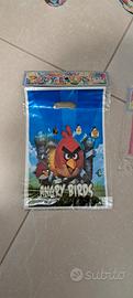 Kit per festa a tema angry birds composto da 5 bicchieri, 4 cappelli,1 tovaglia, 6 sacchetti, 6 inviti, festone, 2 mascherine, 5 fischietti, palloni, 4 piattini carta
