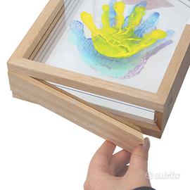 Kit impronte mani piedi bambino, bambina e famiglia giovani mamme e papà idea originale regalo nascita souvenir cornice foto legno casa supporto 4 colori