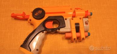 Vendo come da foto al prezzo di 8 euro cadauno 5 nerf originali completa il kit una trentina di dardi i modelli sono Pistola nerf 1 colpo Eaglepoint 2.0 Flip 32 Schock Sidestrike tutti come nuovi. Prezzo per tutti quanti 30 euro.
