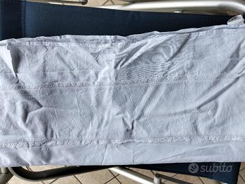 Vendo kit per completino da lettino per bambini bianco con fascia per ricamo a punto croce su lenzuolo e federa. Sotto con angoli. Acquistato e mai fatto.