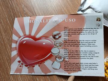 - Contiene pasta per impronte, nastro biadesivo e lettere in plastica gialle.