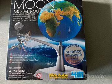 Kit per la costruzione di un modellino Terra e Luna 3d con geografia in rilievo, dotato di piattaforma di supporto e braccio rotativo. Corredato di set pennelli, ciotoline e carta vetrata per la creazione di un prototipo. Ideale per bambini e ragazzi che si approcciano allo studio delle fasi lunari in modo istruttivo e divertente. Nella sua confezione originale, ancora imballato. Ottimo come idea regalo.