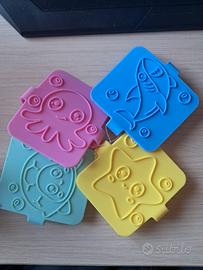 4 forme colorate: stella marina (gialla), squalo (blu), polpo (rosa), pesce (azzurro).