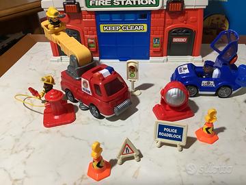 2 vigili del fuoco con camion dei pompieri+idrante+luce di segnalazione