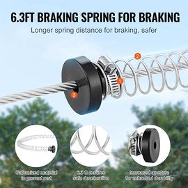 Grande capacità di carico: questo kit zip line per esterni è appositamente progettato per l'esercizio e il gioco dei bambini. Il cavo d'acciaio è spesso 6 mm, prova di un'eccellente capacità di carico. Materiali durevoli e un sistema di freno a molla in acciaio inossidabile mantengono la base sicura.
