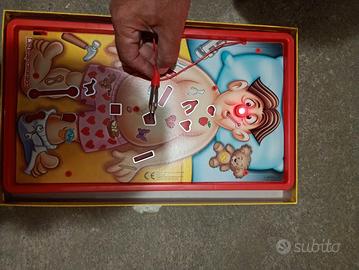Vendo gioco, L'Allegro chirurgo usato poco, ed in ottime condizioni. Il gioco consiste nel togliere le ossa al personaggio, senza fargli male, e si capisce quando il suo naso si illumina. Se si riesce ad eseguire per bene l'intervento il giocatore si guadagna quella carta. Adatto per due o più giocatori.