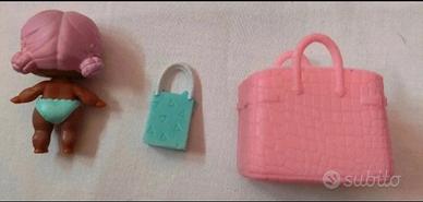 - Borsa rosa in cui mettere la Lil e mini borsetta azzurra con fiocco di neve.