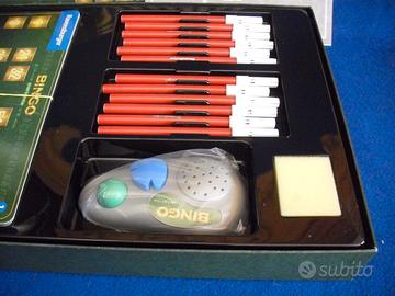 RARITA' ASSOLUTA. IL GIOCO NON E' MAI STATO GIOCATO, SPUGNETTA INTATTA, SPEAKER ANCORA INCELLOFANATO, I PENNARELLI CAUSA DEL TEMPO SI SONO ASCIUGATI, SI POSSONO USARE I CLASSICI CHICCHI PER SEGNARE I NUMERI, NECESSITA' DI PILE NON INCLUSE. Vendita tra privati con consegna o ritiro in zona. Pagamenti: contanti, Paypal (solo formula amici), altri pagamenti da concordare.