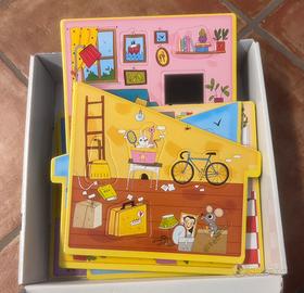 Una casa gigante con tante cose da mettere nel posto giusto. E sul retro scopri tante paroline e impara a leggere! Un gioco che prevede un’attività di classificazione e manipolazione tattile, in linea con il metodo Montessori. Dimensioni 70x100cm.
