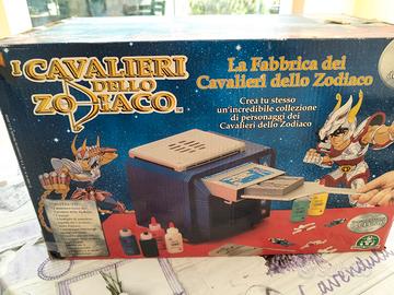 fabbrica dei Cavalieri dello zodiaco con te stampi di diversi personaggi. la confezione è un po' rovinata causa passare degli anni circa 25-28. ci sono vari colori per creare i personaggi cine più piace.