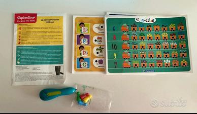 SAPIENTINO ELETTRONICO: Un gioco educativo elettronico con 32 carte e 64 attività di gioco per imparare lettere, parole, numeri, quantità, forme e colori.
