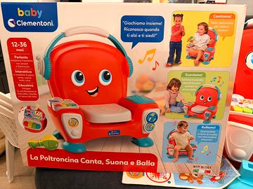 Una simpatica poltroncina con strumenti musicali per intrattenere il piccolo con effetti luminosi e canzoncine e per stimolare la vista, l'udito e la manualità.
